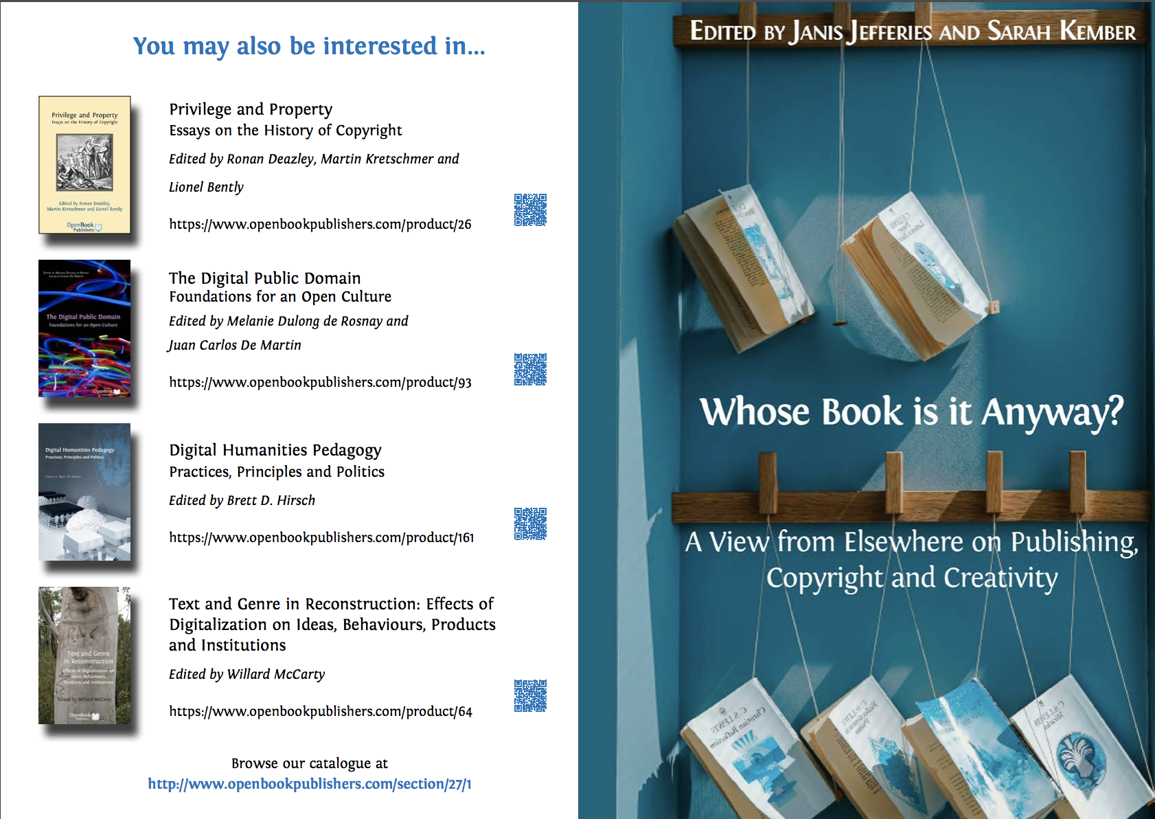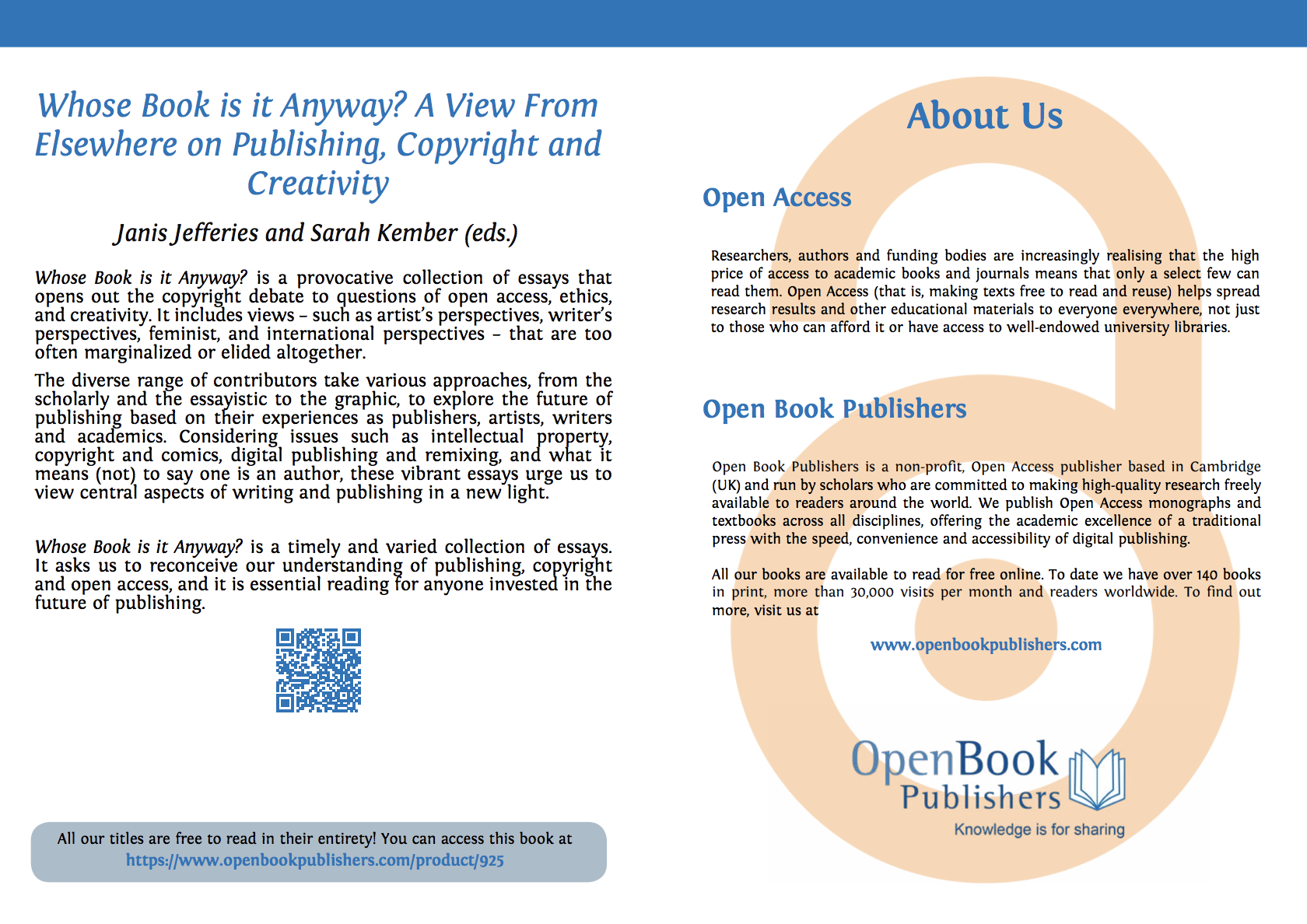 Whose Book is it Anyway? is a timely and varied collection of essays. It asks us to reconceive our understanding of publishing, copyright and open access, and it is essential reading for anyone invested in the future of publishing.