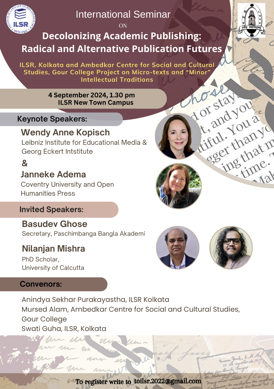 Keynote – Janneke Adema, ‘Radical and Alternative Publication Futures’, Decolonizing Academic Publishing: Radical and Alternative Publication Futures, organised by Anindya Sekhar Purakayastha and Swati Guha (The Institute of Language Studies and Research (ILSR), Kolkata) and Mursed Alam (The Ambedkar Center for Social and Cultural Studies, Gour College, University of Gour Banga), 4 September 2024, online.